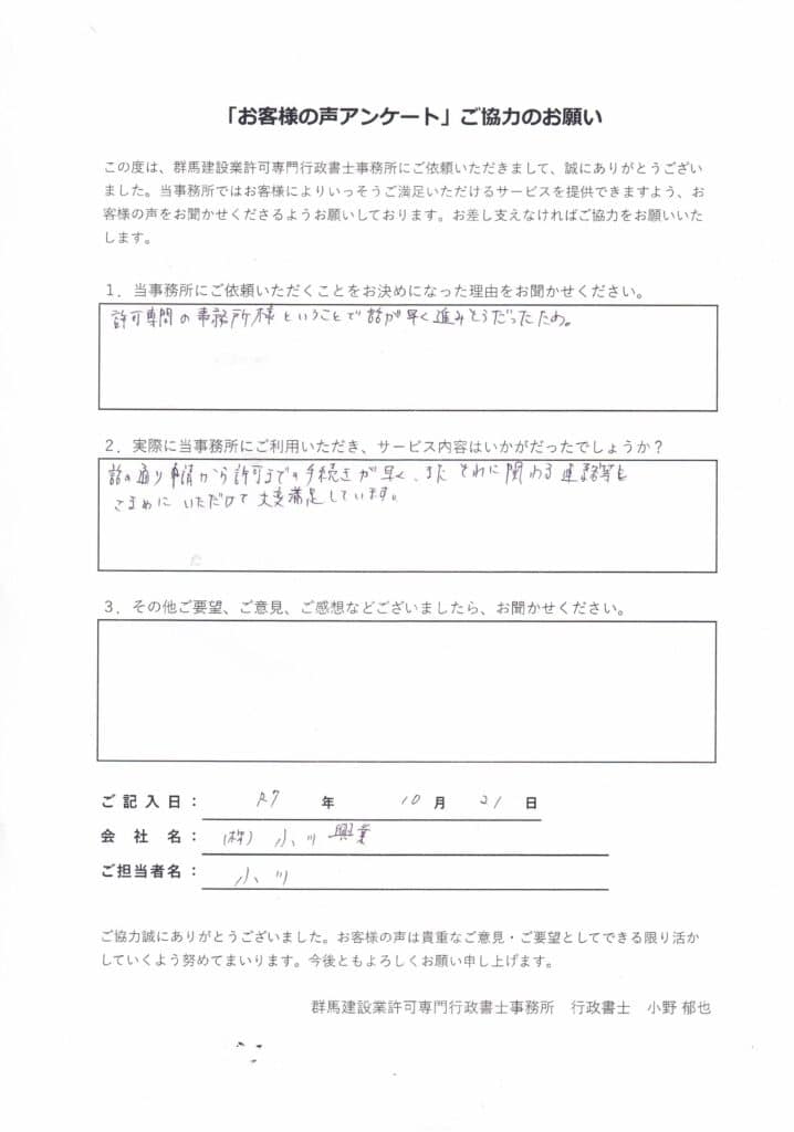 群馬県 建設業許可 新規申請 - 有限会社K様(邑楽郡)