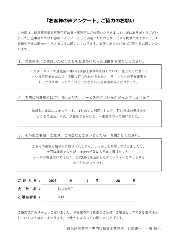 群馬県 建設業許可 新規申請 - 株式会社N様(藤岡市)